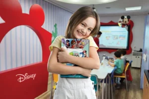 Seu filho aprendendo uma linha de materiais didáticos exclusiva com personagens Disney?